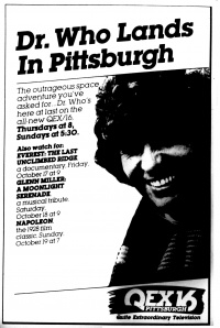 - 16 October 1986: Doctor Who premieres with The Five Doctors. It is WQEX's first day of broadcasting in color.