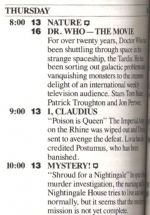 - 17 October 1986: The Tom Baker stories begin, weeknights at 7:30 and compilations Sunday nights at 5:30.