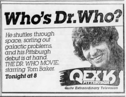 - 1988: Tom Baker stories repeated again. Some of these episodes had on-camera introductions by Pip Theodor or other station personalities. Around that time, Baker was interviewed for a pledge drive.