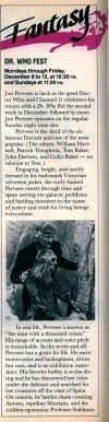 - 8 December 1986: The newly acquired Jon Pertwee package airs nightly, interrupted by pledge breaks. The Curse of Peladon is aired on WTTW for the first time during this run.